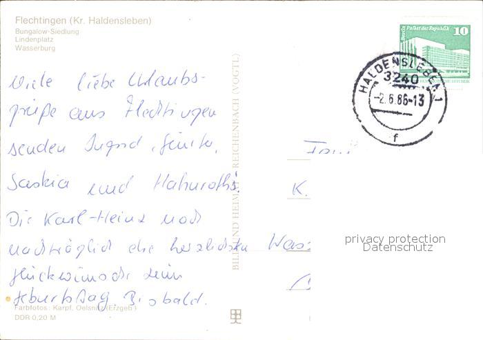 72136035 alte Postkarte Flechtingen Bungalow Siedlung Lindenplatz Wasserburg postalisch gelaufen Erhaltung siehe scans KatCode: 11110015083230