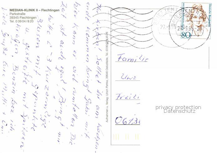 72721942 alte Postkarte Flechtingen Median-Klinik 2 Partkstrasse postalisch gelaufen Erhaltung siehe scans [LiesaD40] KatCode: 11110015083230