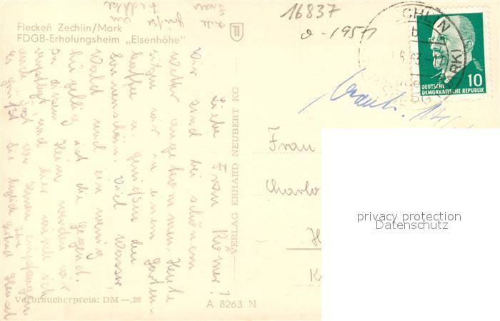 43369418 alte Postkarte Flecken Zechlin FDGB Erholungsheim Elsenhoehe postalisch gelaufen Erhaltung siehe scans [FriedD77] KatCode: 11110012068353