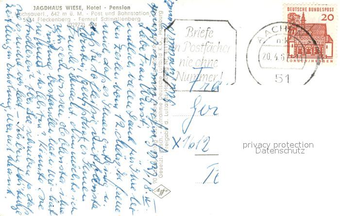 73613149 alte Postkarte Fleckenberg Fliegeraufnahme Jagdhaus Wiese Hotel Pension postalisch gelaufen Erhaltung siehe scans [LiesaD40] KatCode: 11110005958040