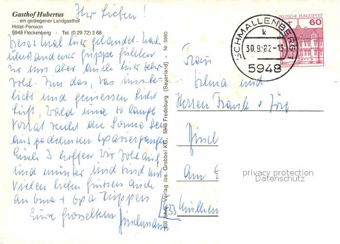 72654797 alte Postkarte Fleckenberg Gasthof Hubertus Wassertretstelle postalisch gelaufen Erhaltung siehe scans [AndreD76] KatCode: 11110005958040