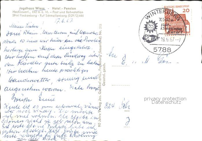 72579965 alte Postkarte Fleckenberg Jagdhaus Wiese Hotel Pension postalisch gelaufen Erhaltung siehe scans [LiesaD40] KatCode: 11110005958040