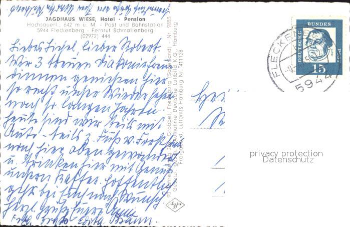 72203591 alte Postkarte Fleckenberg Jagdhaus Wiese Hotel Pension Fliegeraufnahme postalisch gelaufen Erhaltung siehe scans KatCode: 11110005958040