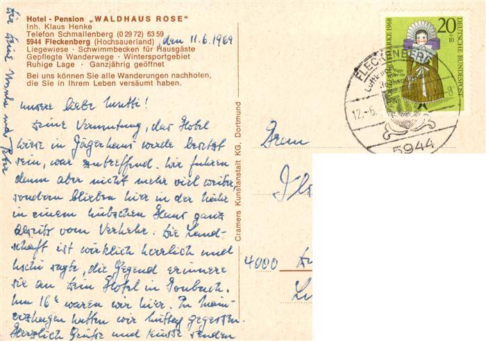 73946646 alte Postkarte Fleckenberg Schmallenberg Hotel Pension Waldhaus Rose postalisch gelaufen Fliegeraufnahme Erhaltung siehe scans [FriedD77] KatCode: 11110005958040