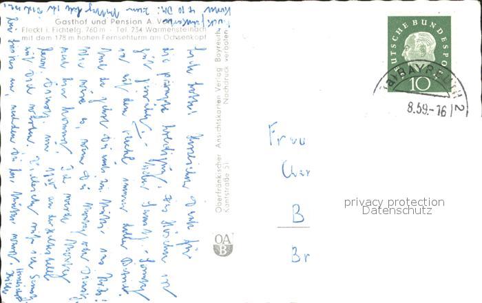 71928241 alte Postkarte Fleckl Gasthof Pension Voit postalisch gelaufen Erhaltung siehe scans KatCode: 11110009472198