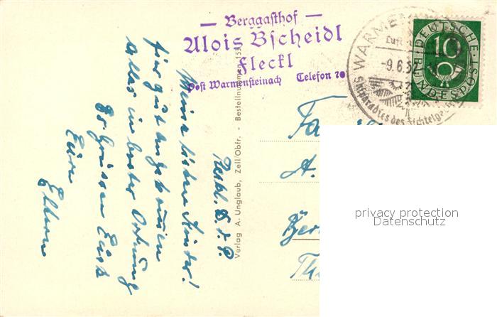 43361749 alte Postkarte Fleckl Loechleinstal Asenturm Waldbad Fleckl Berggasthof Fleckl postalisch gelaufen Erhaltung siehe scans [WerneD78] KatCode: 11110009472198