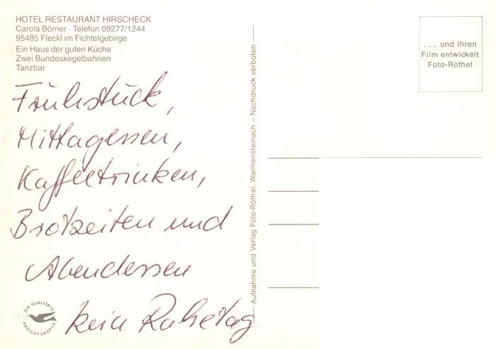 73921569 Fleckl Oberwarmensteinach Hotel Restaurant Hirscheck postalisch nicht gelaufen Erhaltung siehe scans [WerneD78] Wern Katcode 11110009472198