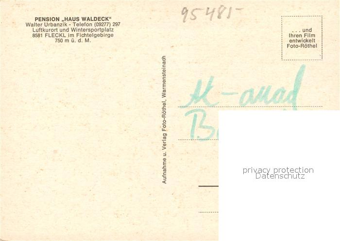 73110386 Fleckl Pension Haus Waldeck postalisch nicht gelaufen Erhaltung siehe scans [NatalD47] KatCode: 11110009472198