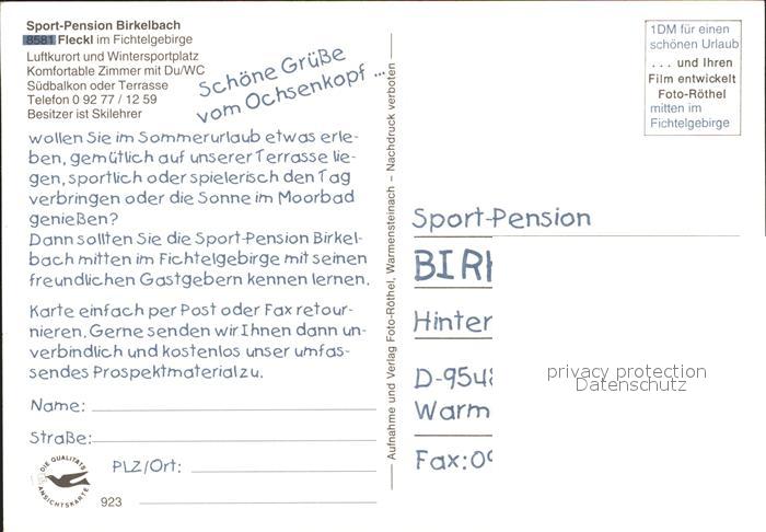 71940000 Fleckl Sport Pension Birkelbach postalisch nicht gelaufen KatCode: 11110009472198