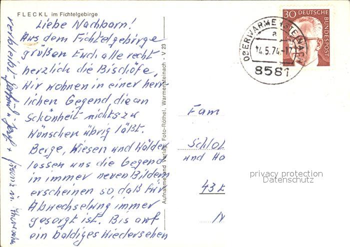 72525757 alte Postkarte Fleckl Teilansicht Fichtelgebirge postalisch gelaufen Erhaltung siehe scans KatCode: 11110009472198