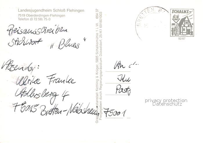 72958423 alte Postkarte Flehingen Oberderdingen Landesjugendheim Schloss Flehingen postalisch gelaufen Erhaltung siehe scans [NatalD47] KatCode: 11110008215059