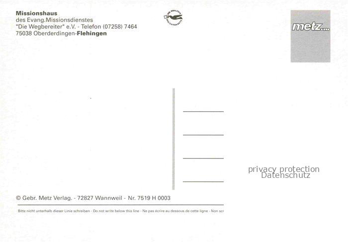 74099834 Flehingen Oberderdingen Missionshaus des Ev Missionsdienstes postalisch nicht gelaufen Erhaltung siehe scans [WerneD78] KatCode: 11110008215059