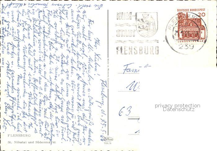 72393929 alte Postkarte Flensburg postalisch gelaufen Erhaltung siehe scans KatCode: 11110001001000