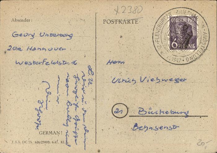 41394643 Flensburg Briefmarken Ausstellung 25.-28.Juni 1947 KatCode 11110001001000