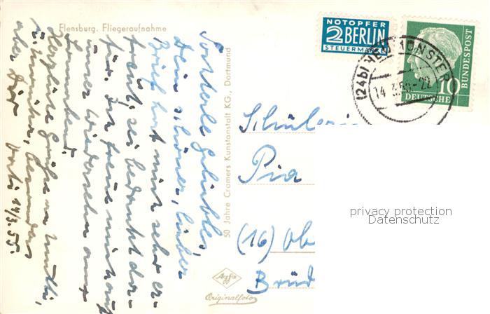 73830344 alte Postkarte Flensburg DE Fliegeraufnahme postalisch gelaufen Erhaltung siehe scans [FriedD77] KatCode: 11110001001000