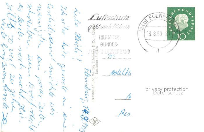 73833197 alte Postkarte Flensburg DE Hafen Stadttor Kirche Marktplatz Uferstrasse postalisch gelaufen Erhaltung siehe scans [WerneD78] KatCode: 11110001001000