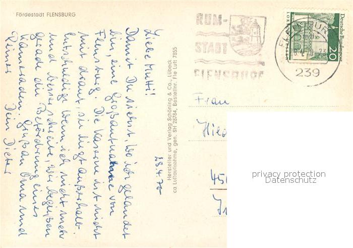 73062718 alte Postkarte Flensburg Fliegeraufnahme postalisch gelaufen Erhaltung siehe scans [NatalD47] KatCode: 11110001001000
