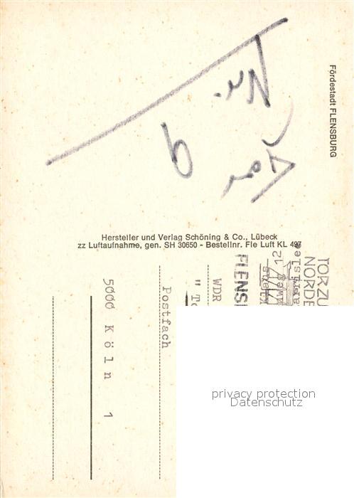 73321822 alte Postkarte Flensburg Fliegeraufnahme postalisch gelaufen Erhaltung siehe scans [KathaD81] KatCode: 11110001001000