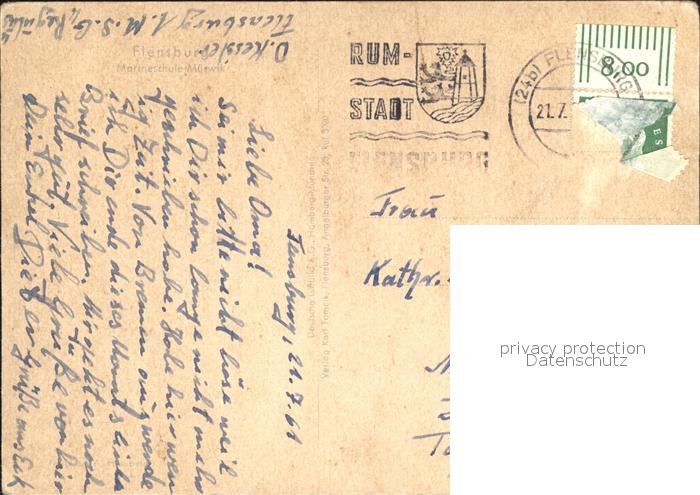 72102474 alte Postkarte Flensburg Fliegeraufnahme postalisch gelaufen Erhaltung siehe scans KatCode: 11110001001000