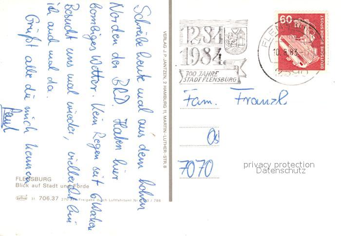 73173947 alte Postkarte Flensburg Fliegeraufnahme Foerde postalisch gelaufen Erhaltung siehe scans [NatalD47] KatCode: 11110001001000