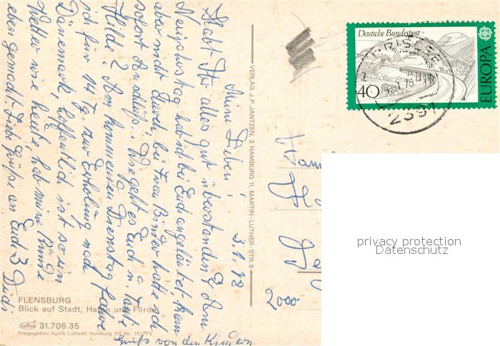 73195968 alte Postkarte Flensburg Fliegeraufnahme Hafen Foerde postalisch gelaufen Erhaltung siehe scans [KathaD81] KatCode: 11110001001000