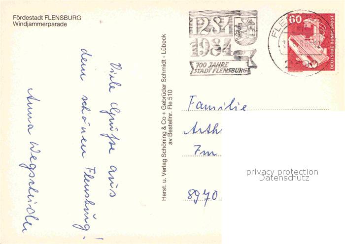 72872683 alte Postkarte Flensburg Fliegeraufnahme Windjammerparade postalisch gelaufen Erhaltung siehe scans [LiesaD40] KatCode: 11110001001000
