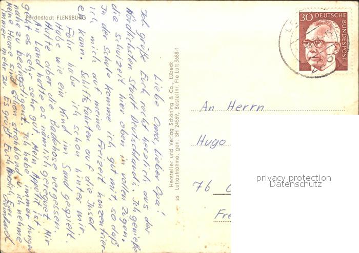 72460694 alte Postkarte Flensburg Foerde Fliegeraufnahme postalisch gelaufen Erhaltung siehe scans KatCode: 11110001001000