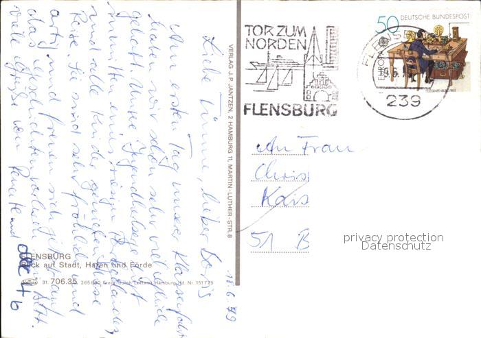 72460118 alte Postkarte Flensburg Foerde Fliegeraufnahme postalisch gelaufen Erhaltung siehe scans KatCode: 11110001001000