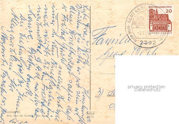 73061698 alte Postkarte Flensburg Foerde und Stadtblick postalisch gelaufen Erhaltung siehe scans [WerneD78] KatCode: 11110001001000
