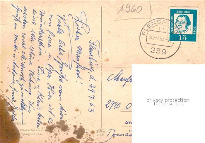 72862808 alte Postkarte Flensburg Grenzuebergang Krusau postalisch gelaufen Erhaltung siehe scans [WerneD78] KatCode: 11110001001000