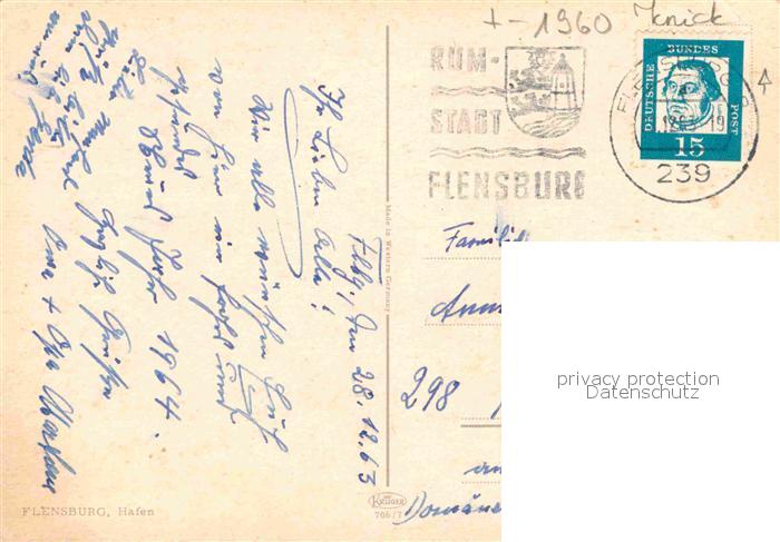 72862810 alte Postkarte Flensburg Hafen postalisch gelaufen Erhaltung siehe scans [WerneD78] KatCode: 11110001001000