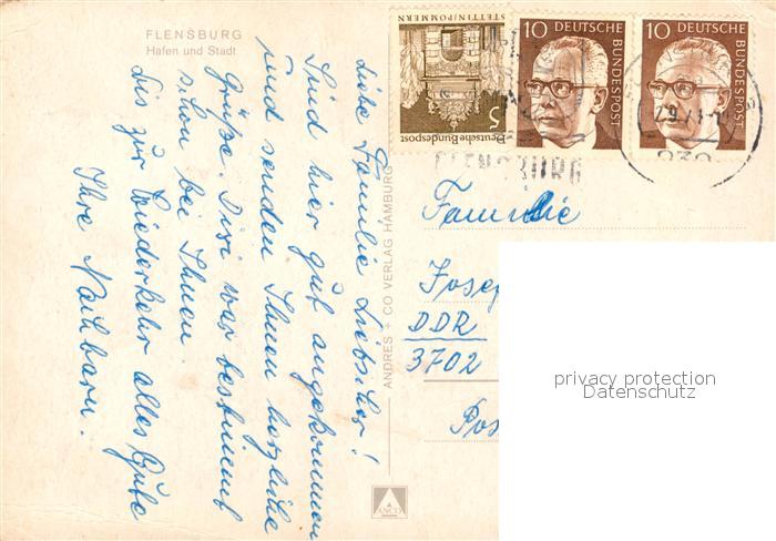 73067347 alte Postkarte Flensburg Hafen und Stadt postalisch gelaufen Erhaltung siehe scans [WerneD78] KatCode: 11110001001000