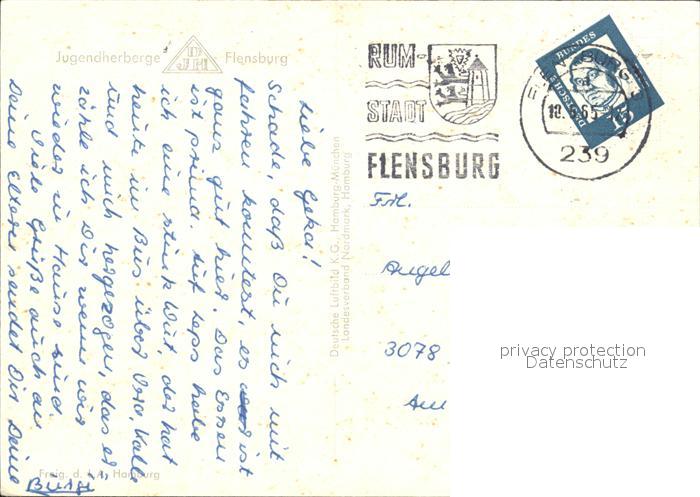 72460698 alte Postkarte Flensburg Jugendherberge postalisch gelaufen Erhaltung siehe scans KatCode: 11110001001000