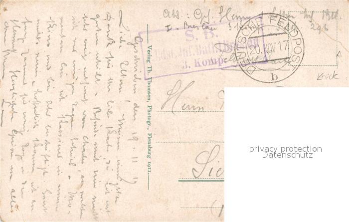 73602537 alte Postkarte Flensburg Marineschule postalisch gelaufen Feldpost – Stempel Erhaltung siehe scans [WerneD78] KatCode: 11110001001000