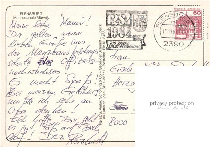 73613680 alte Postkarte Flensburg Marineschule M?rwik Fliegeraufnahme postalisch gelaufen Erhaltung siehe scans [PaolaD17] KatCode: 11110001001000