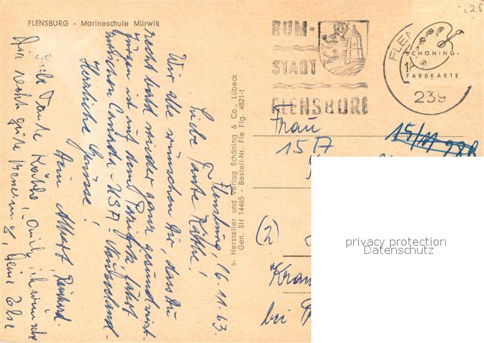 73719132 alte Postkarte Flensburg Marineschule Muerwik postalisch gelaufen Erhaltung siehe scans [WerneD78] KatCode: 11110001001000