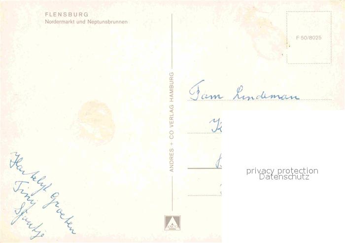 72855520 Flensburg Nordermarkt und Neptunbrunnen postalisch nicht gelaufen Erhaltung siehe scans [LiesaD40] KatCode: 11110001001000