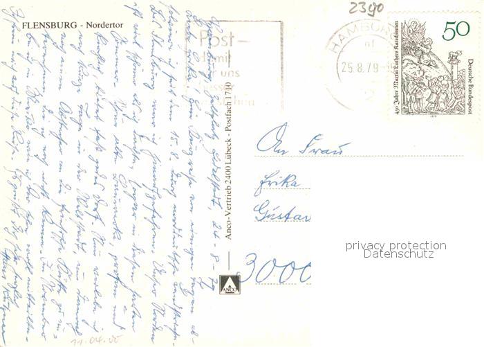 72902015 alte Postkarte Flensburg Nordertor postalisch gelaufen Erhaltung siehe scans [WerneD78] KatCode: 11110001001000