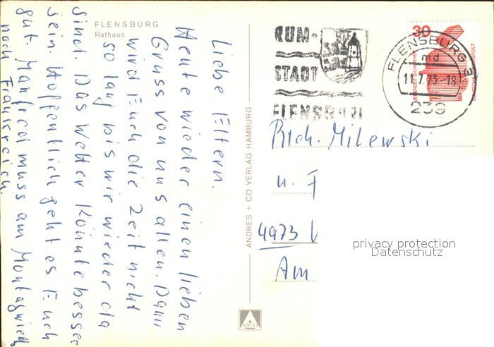 71938810 alte Postkarte Flensburg Rathaus postalisch gelaufen Erhaltung siehe scans KatCode: 11110001001000