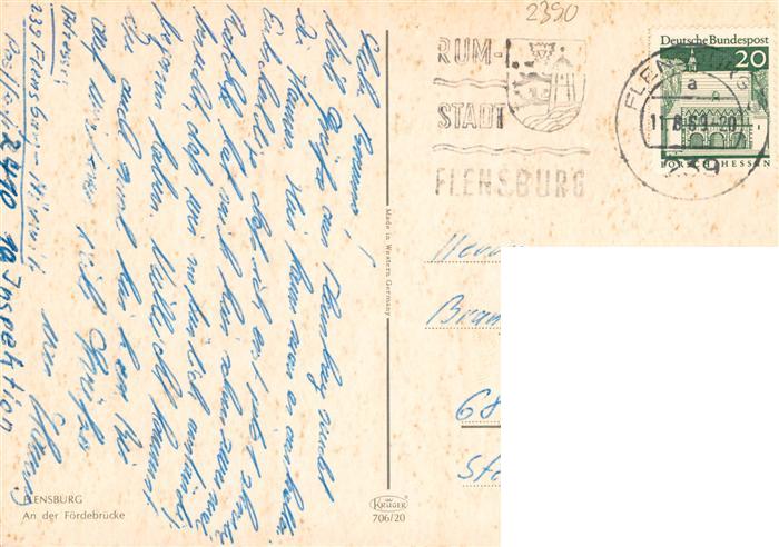 73941173 alte Postkarte Flensburg Schleswig-Holstein An der Foerdebruecke postalisch gelaufen Erhaltung siehe scans [FriedD77] KatCode: 11110001001000