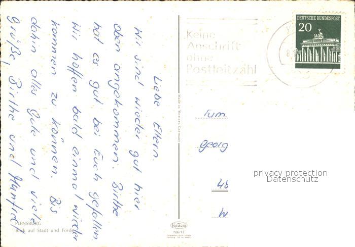 71946804 alte Postkarte Flensburg Stadt und Foerde Fliegeraufnahme postalisch gelaufen Erhaltung siehe scans KatCode: 11110001001000