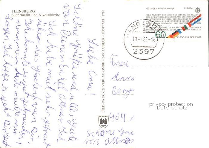 72031938 alte Postkarte Flensburg Suedermarkt Nikolaikirche postalisch gelaufen Erhaltung siehe scans KatCode: 11110001001000
