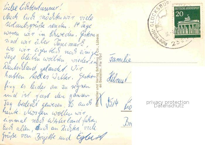 72654367 alte Postkarte Flensburg Suedermarkt Nordertor Foerderbruecke Hafenpartie Rathaus Strandbad Solitude Gorch Fock Schloss Gluecksburg postalisch gelaufen Erhaltung siehe scans [WerneD78] KatCode: 11110001001000