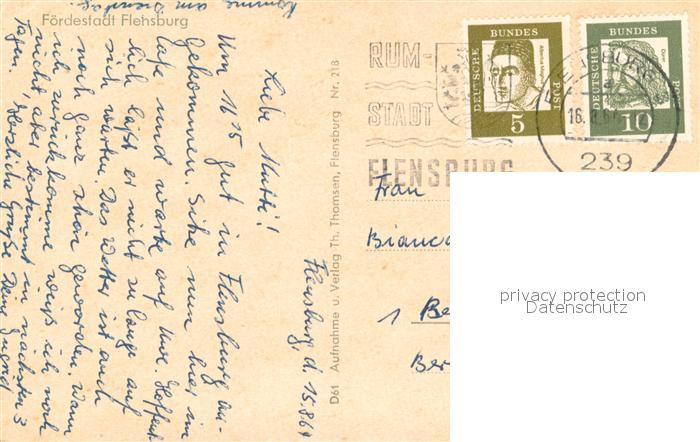 73613627 alte Postkarte Flensburg postalisch gelaufen Erhaltung siehe scans [PaolaD17] KatCode: 11110001001000