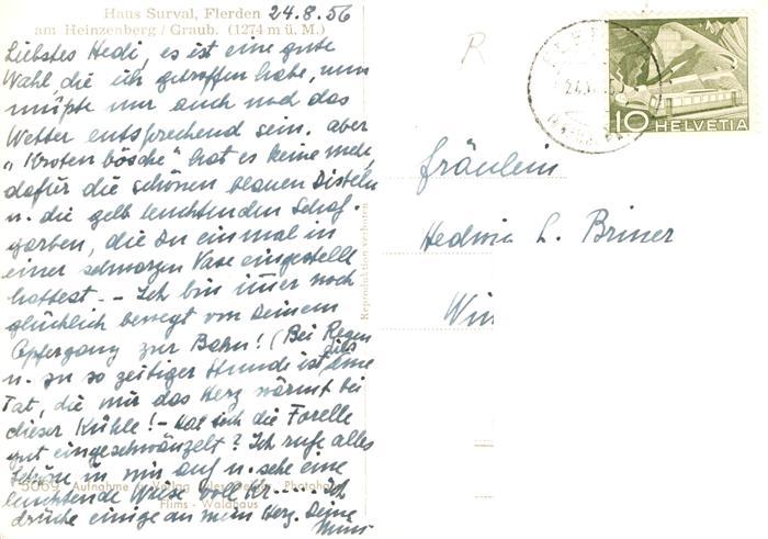 13889420 alte Postkarte Flerden GR Haus Surval am Heinzenberg postalisch gelaufen Erhaltung siehe scans [WerneD78] KatCode: 11470100315046