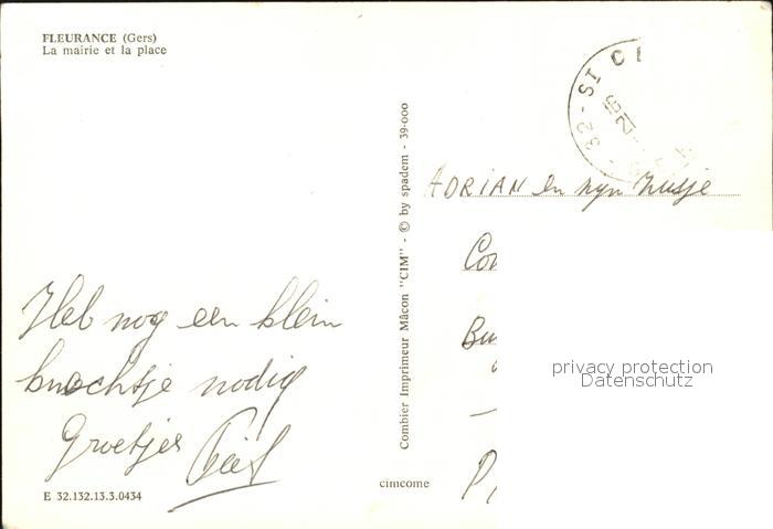 12431248 carte postale Fleurance La mairie et la place postalisch gelaufen Erhaltung siehe scans KatCode: 11170032232132