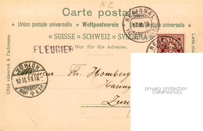 13790109 alte Postkarte Fleurier NE Gesamtansicht – Chapeau de Napoleon – Hotel de la Poste – Hotel Victoria postalisch gelaufen Erhaltung siehe scans [LiesaD40] KatCode: 11470130430224