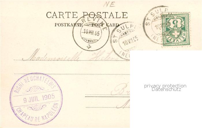 13850926 alte Postkarte Fleurier NE Rue de la Place d’Armes et Chapeau Napoleon postalisch gelaufen Erhaltung siehe scans [WerneD78] KatCode: 11470130430224