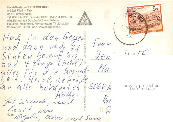73338245 Fliess Hotel Fliesserhof Skipisten Schwimmbad postalisch nicht gelaufen Erhaltung siehe scans [LiesaD40] KatCode: 11390334070604