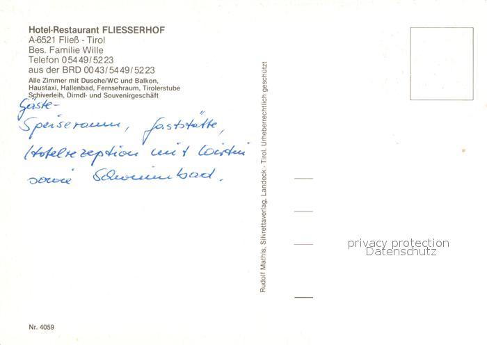 72934218 Fliess Hotel Restaurant Fliesserhof Gaststube Hallenbad postalisch nicht gelaufen Erhaltung siehe scans [WerneD78] KatCode: 11390334070604